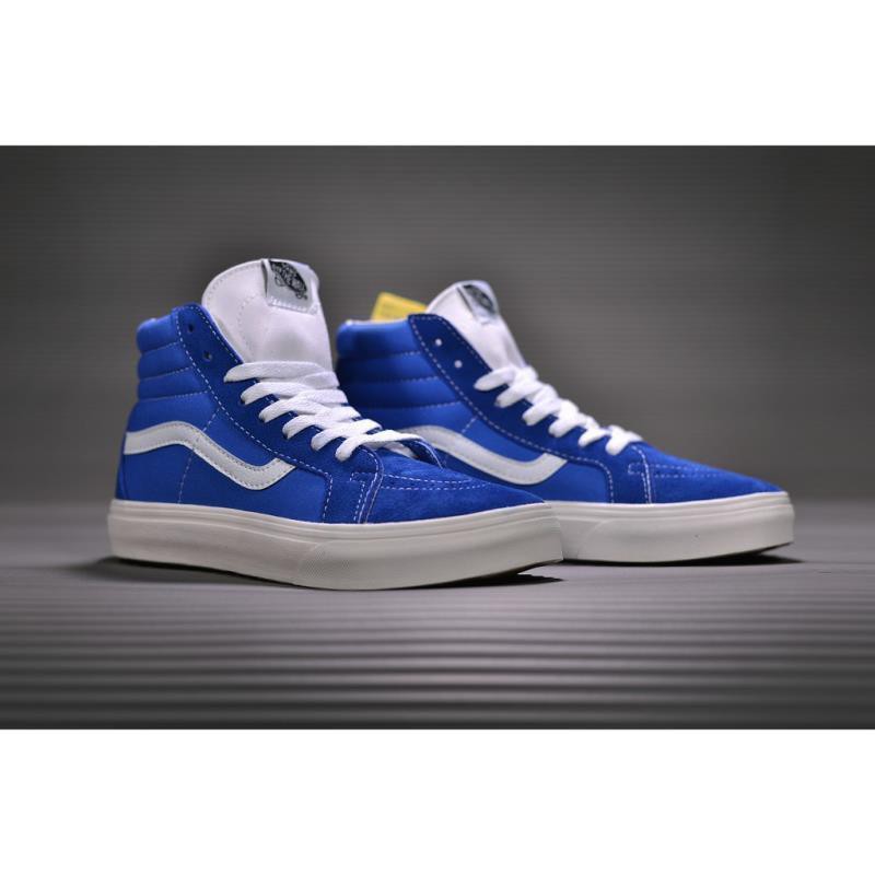 View Full Vans Sk8 Hi High Top Canvas Casual Skate Shoes Blue And White 35