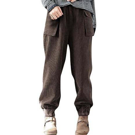 Rosatro Womens Corduroy Leisure Stretch Waistline Trousers Casual