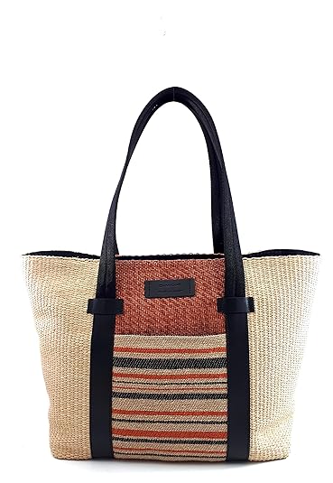 View Full Dimoni Women S Bag With Two Handle In Braided Raffia And Leather
