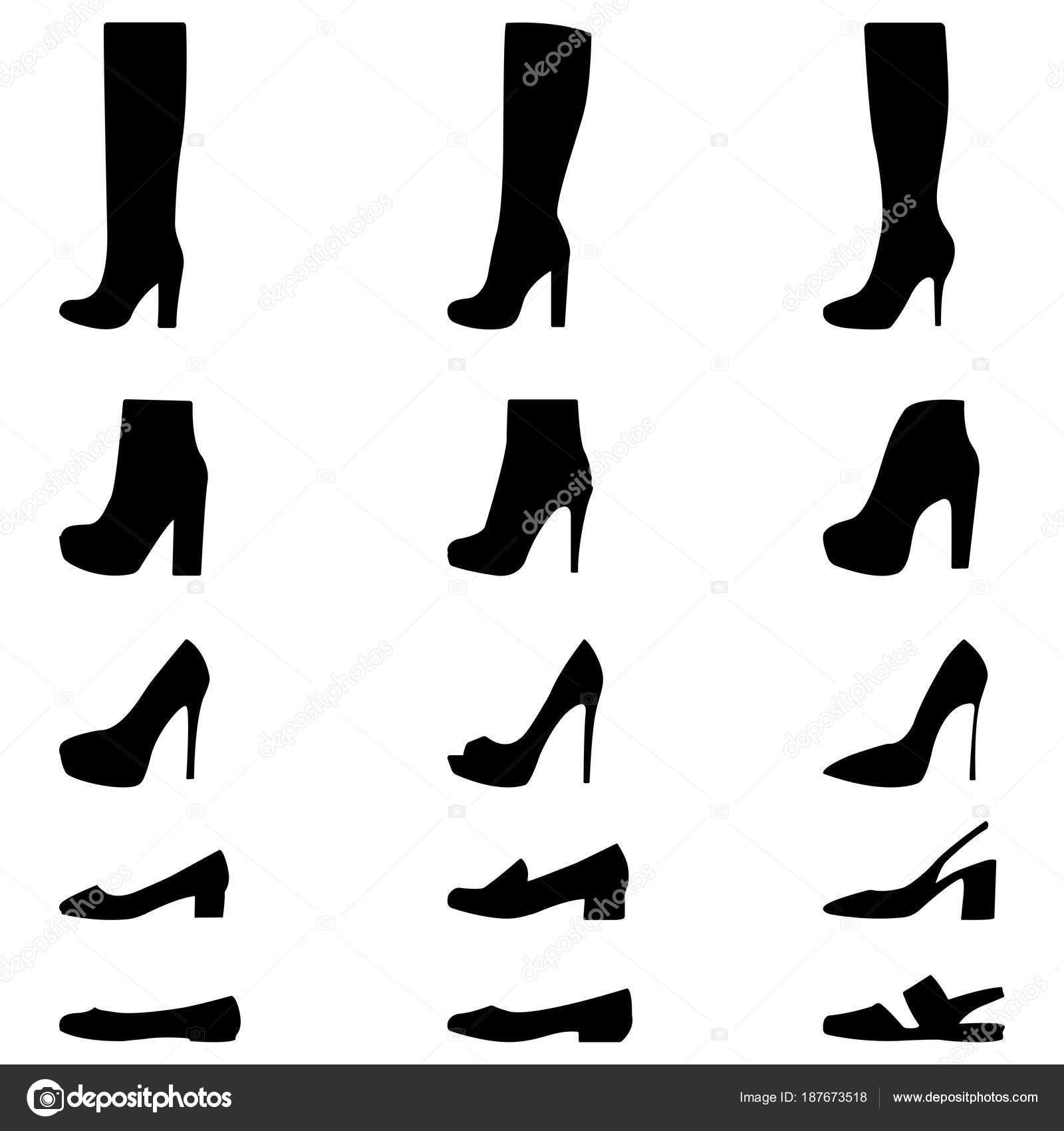 View Full Set Icons Women Shoes Vector Shoes Silhouette Black White Stock