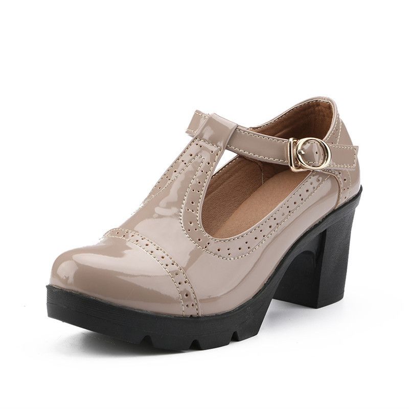 Mazia Sweet Women Pumps T Strap Cut Outs Square Chunky Heel Mary