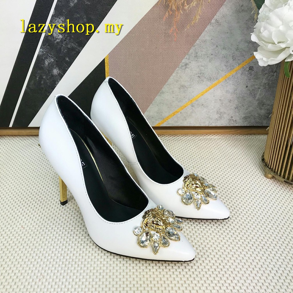 View Full 2019 Versace White Genuine Leather Women High Heels Wedding Dinner