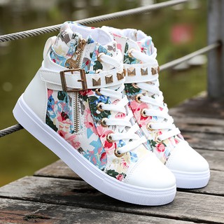 View Full White Canvas High Top Shoes Women Chinese Landscape Painting
